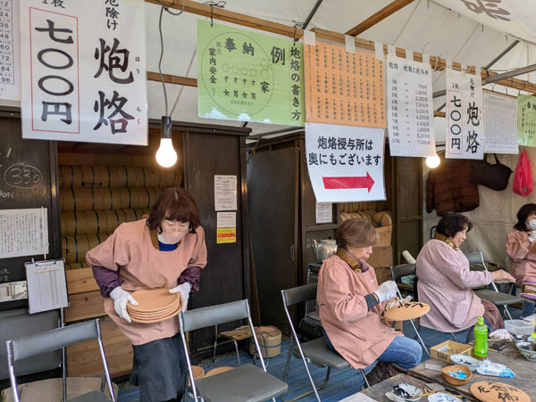 山門をくぐるとさすがに屋台はなくなりますが、代わりにパッと目に付くのが厄除けの炮烙(ほうらく)を販売しているテントの数の多さです。