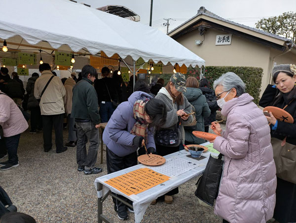 購入した炮烙に願い事を書く人たち