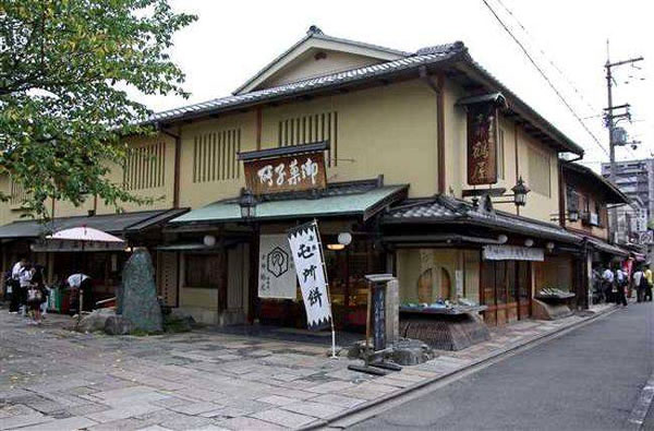 参道沿い(坊城通り沿い)の新撰組ゆかりの和菓子屋「鶴屋鶴壽庵」(つるやかくじゅあん)にて