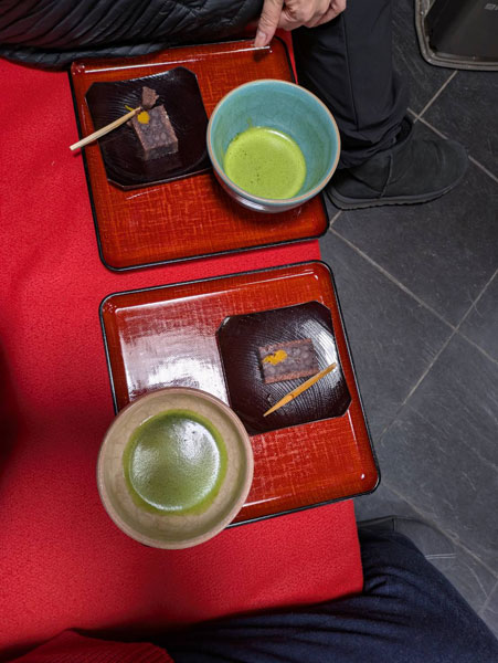 毎年節分を祝って、この店では銘菓・「壬生の郷」(みぶのさと)という羊羹とお薄の提供(代金・800円)があります。
